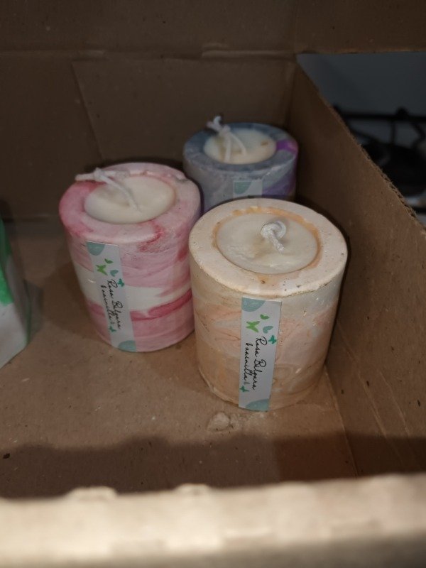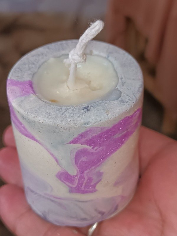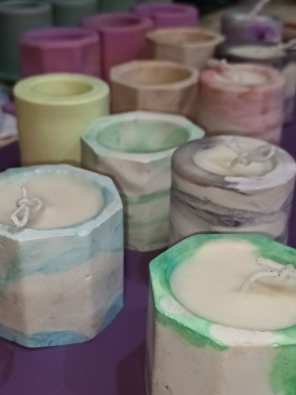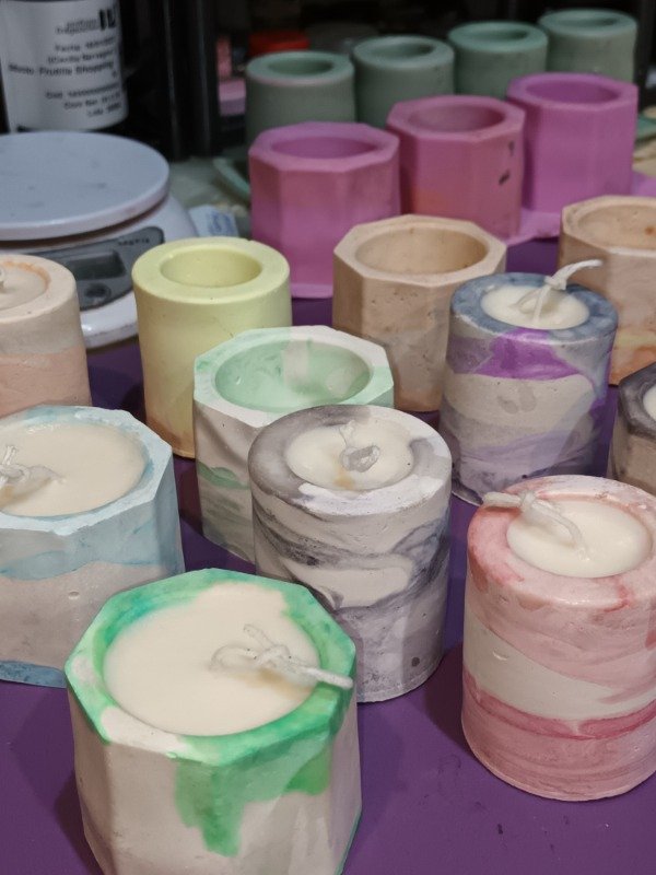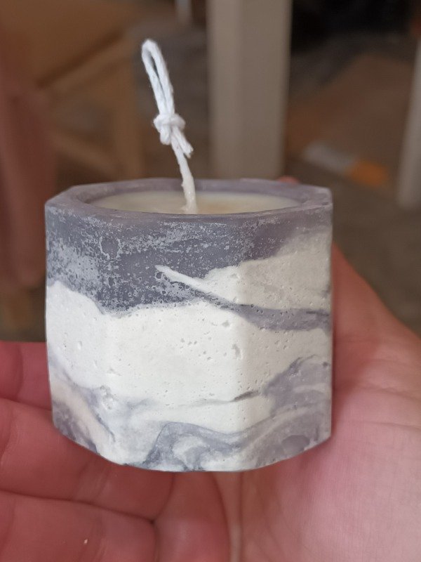 Vela de soja Aromatizada realizada en envase de mini cemento.